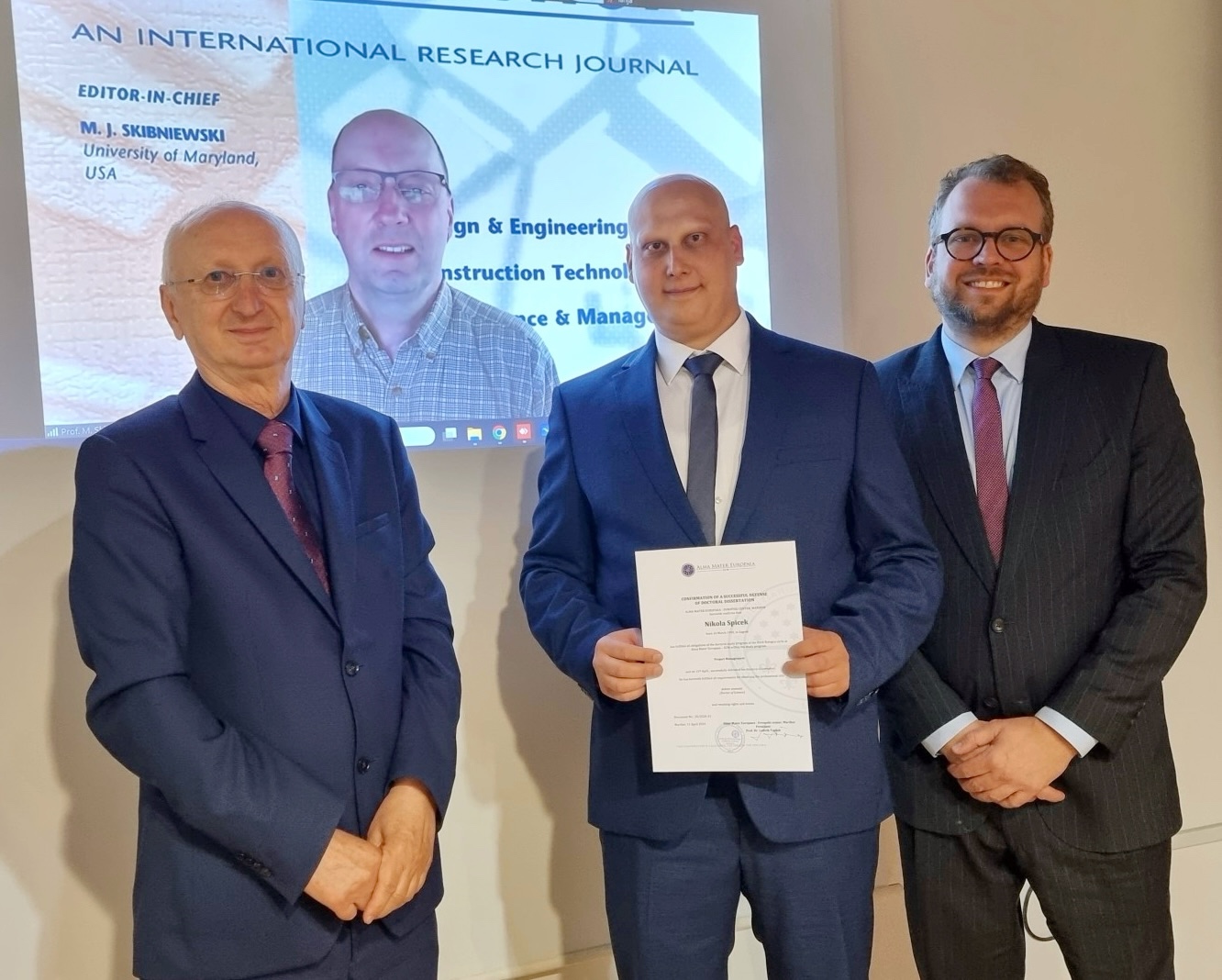 Alma Mater Europaea – ECM je dobila novega doktroja znanosti. Nikola Špiček je uspešno zagovarjal doktorsko nalogo iz projektnega managamenta z naslovom Analiza kritičnih dejavnikov uspeha pri upravljanju gradbenih projektov z uporabo tehnologije 3D tiskanja, ki je nastala pod mentorstvom prof. dr. Mirosława J. Skibniewskega.
