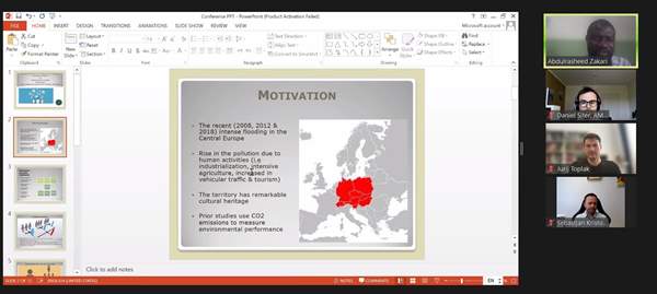 Abdulrasheed Zakari, raziskovalec Alma Mater Europaea, je nastopil z referatom o Hofstedejevih kulturnih dimenzijah in okoljskem odtisu v Srednji Evropi ter ponazoril medsebojno relacijo. Zakari je izpostavil, »da ima kultura vsekakor povezavo z okoljskim stanjem,” kar je tudi empirično utemeljil v članku “Investigation into the social behavioural effects on a country's ecological footprint: Evidence from Central Europe”, ki sta ga s profesorjem Toplakom objavila pri priznani reviji Technology Forecasting and Social Change.