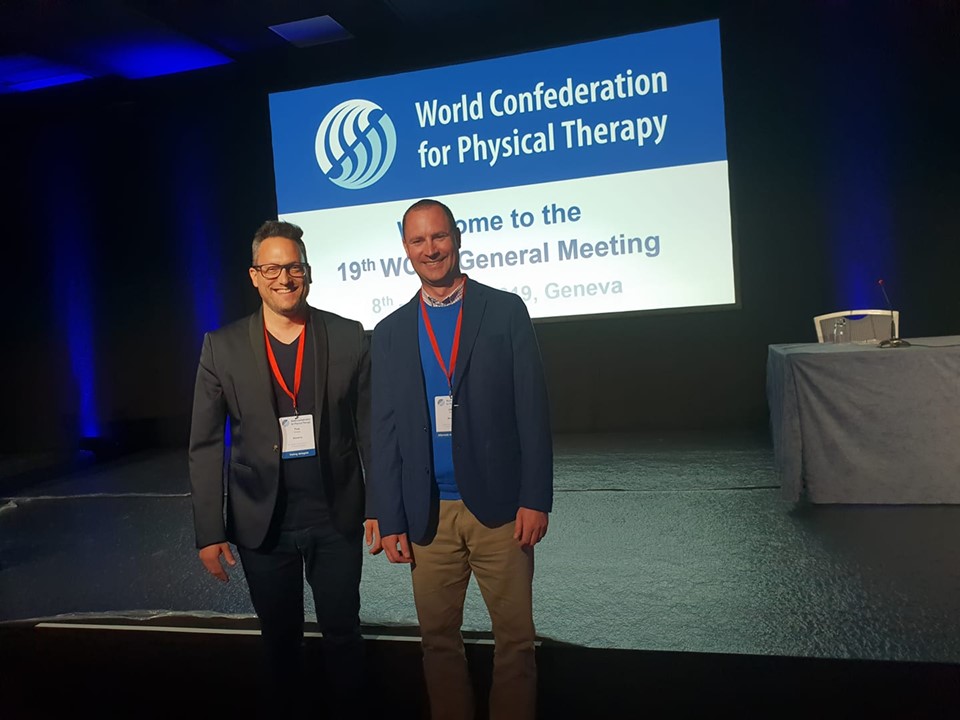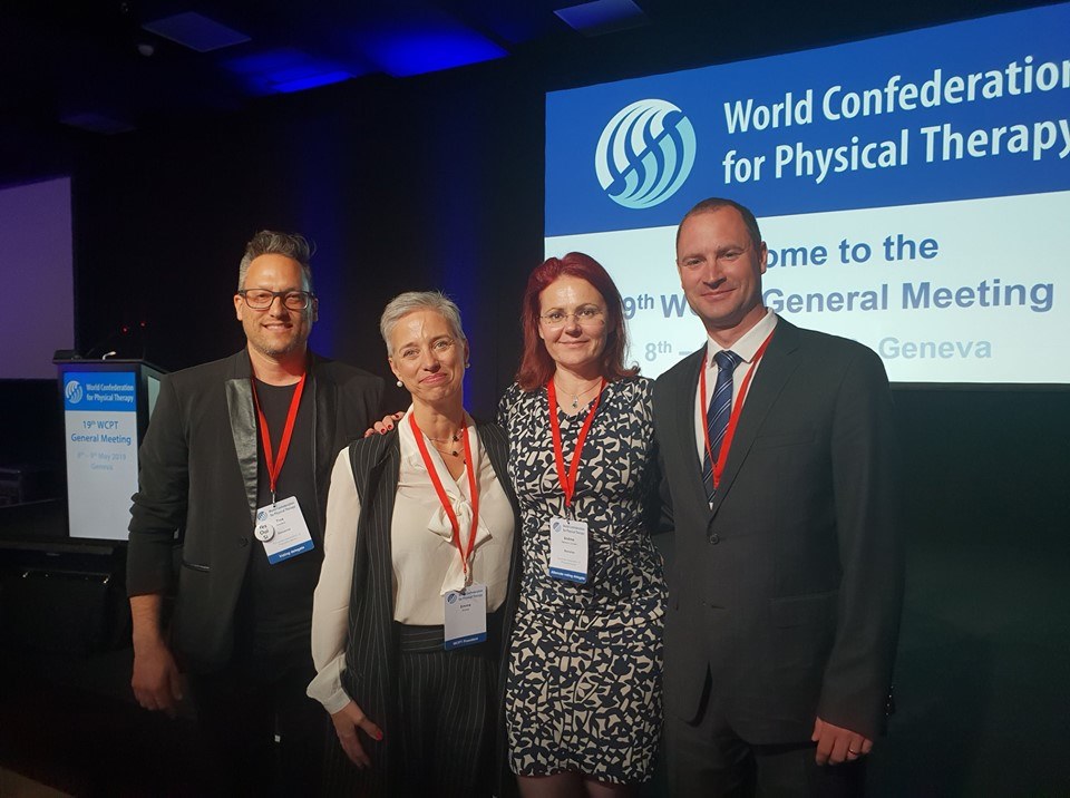 Naš predavatelj in mentor številnih diplomskih nalog na Alma Mater mag. Tine Kovačič, sicer predsednik Fizioterapevtskega združenja Slovenije, se je nedavno mudil na svetovnem fizioterapetvskem kongresu v Ženevi.