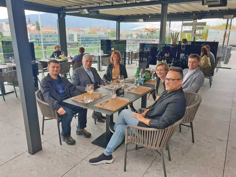 Na delovnem kosilu jih je sprejel predsednik Alma Mater, prof. dr Ludvik Toplak, kjer so skupaj z doc. dr. Tinetom Kovačičem spregovorili o možnostih nadaljnjega plodnega sodelovanja na raziskovalnih projektih, pri strateškem partnerstvu na aplikativnih projektih, možnostih akademskega ter pedagoškega sodelovanja na doktorskem in magistrskem študijskem programu fizioterapija. Beseda je tekla o krepitvi inovativnih partnerstev, vzpostavitvi oz. sodelovanju pri skupnih študijskih programih, soorganizaciji mednarodne konference in seminarjev, sodelovanje pri mednarodnih raziskavah ter nenazadnje o možnosti mobilnosti naših študentov fizioterapije.