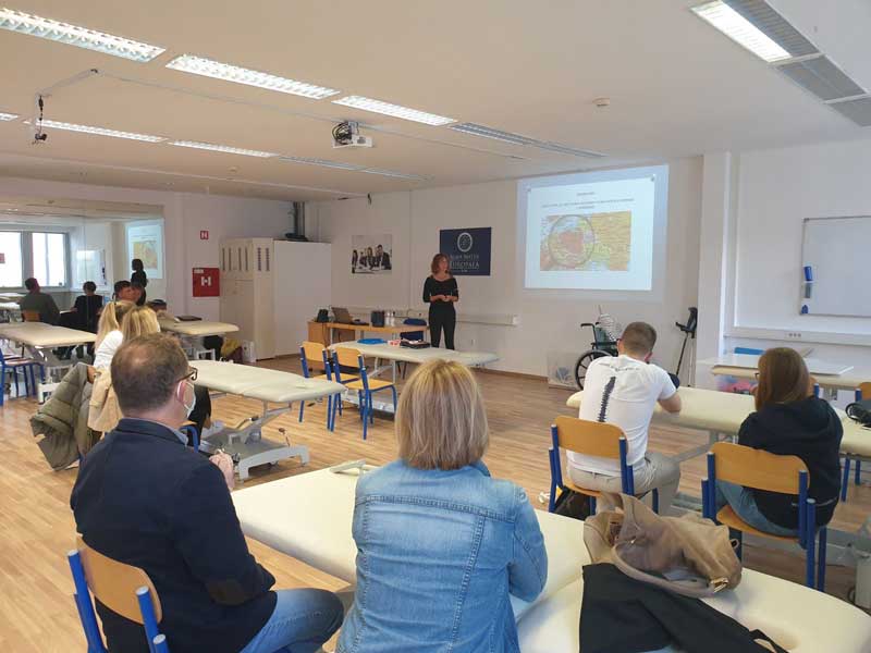 V popoldanskem delu interaktivnega srečanja so poljski profesorji izvedli zanimiva predavanja s praktičnimi prikazi za študente in visokošolske učitelje fizioterapije, osvetlili specifične teme s področja speleoterapije, športne fizioterapije pri paralimpijskih športnikih ter prilagojeno telesno dejavnostjo pri osebah s slepoto.