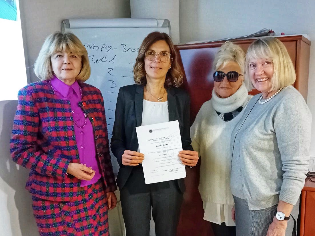 Na fotografiji (od leve proti desni): izr. prof. dr. Nadja Plazar (mnetorica), zasl. prof. dr. Jana Goriup (predsednica komisije za zagovor) zasl. prof. ddr. Mara Ovsenik (članica komisje za zagovor).