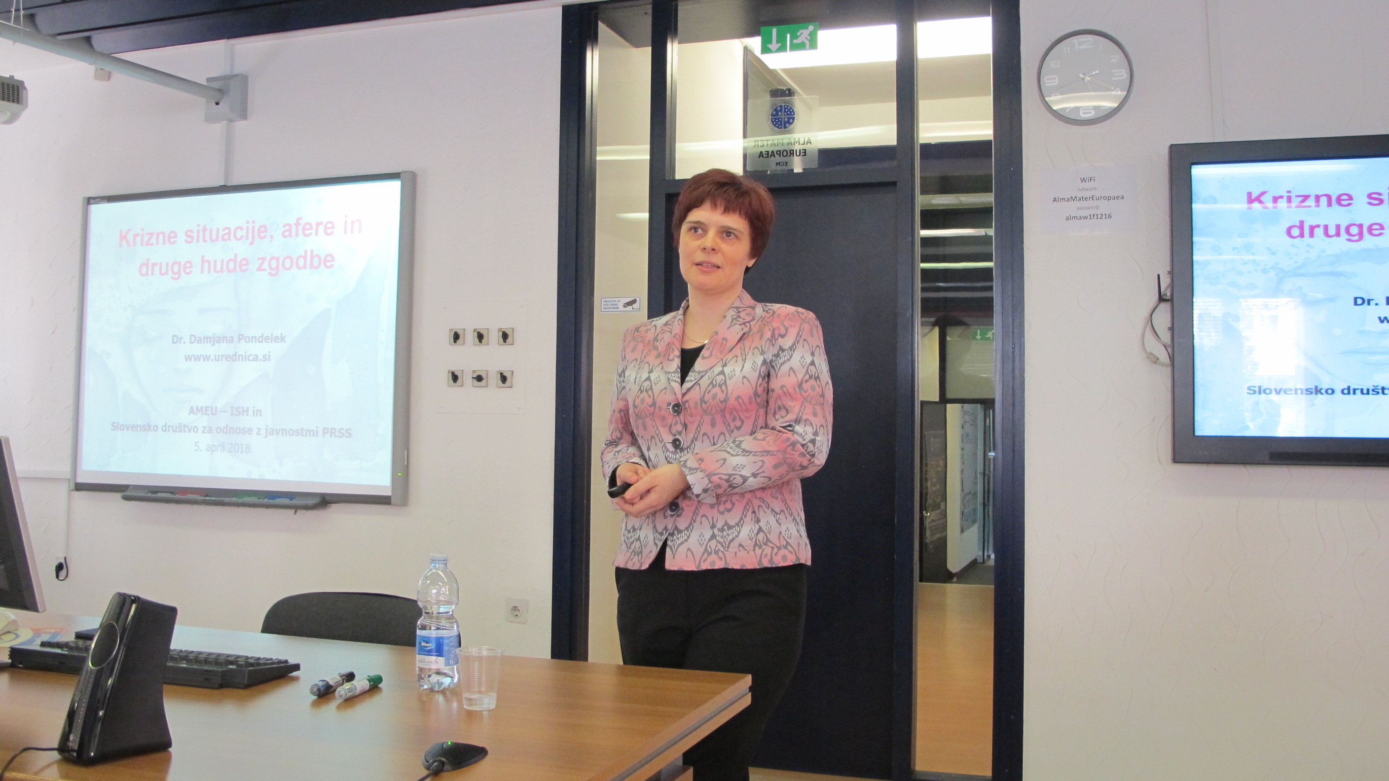 Prvi četrtek v mesecu aprilu je AMEU – ISH (Fakulteta za podiplomski humanistični študij) skupaj s Slovenskim društvom za odnose z javnostmi (PRSS) – regijo 01, v svojih prostorih v Ljubljani organizirala srečanje z dr. Damjano Pondelek na temo soočanja s kriznimi situacijami, aferami in drugimi hudimi zgodbami.