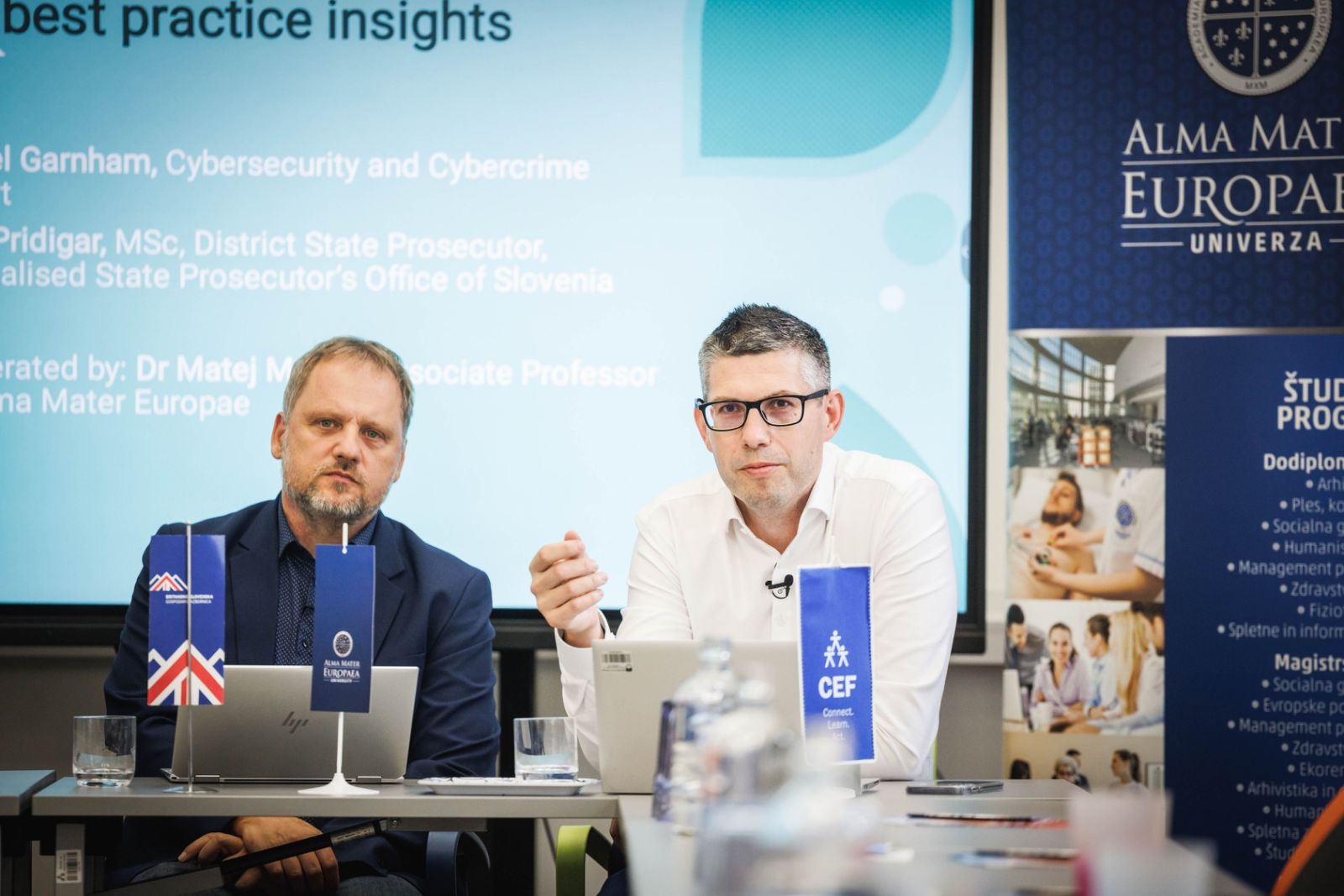 Razprava je izpostavila dvojno vlogo umetne inteligence, kot grožnje in kot orodja obrambe, ter potrebo po usklajenem razvoju izobraževanja, regulative in poslovnih praks. Dogodek je še posebej poudaril, kako Univerza Alma Mater Europaea aktivno vključuje te aktualne izzive digitalnega sveta v svoje študijske programe, kar študentom omogoča poglobljeno razumevanje in pripravo na prihodnost v hitro spreminjajočem se tehnološkem okolju. Gostitelj in moderator dogodka je bil izr. prof. dr. Matej Mertik, vodja programov spletnih in informacijskih tehnologij na Univerzi Alma Mater Europaea, ki svojo strokovnost širi tudi kot pridruženi znanstveni sodelavec in gostujoči profesor na CERN-u.