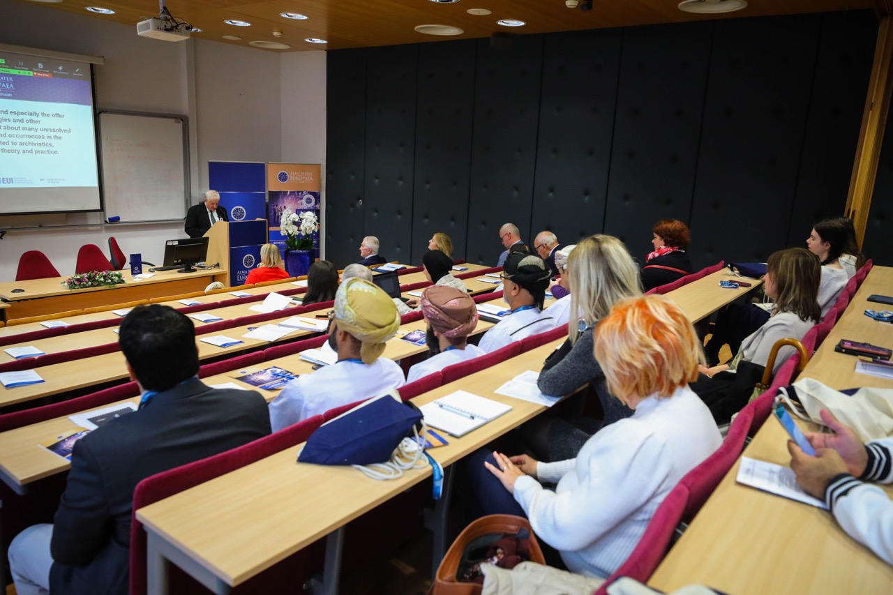 »Klasična in digitalna arhivska teorija in praksa ter vpliv informacijskih tehnologij na delo v profesionalnih arhivih in arhivskih službah pri ustvarjalcih sta nesporno tesno povezani temi. Odgovorili bomo na mnoga vprašanja digitalnih inovacij in IT dokumentov v odnosu s kibernetsko varnostjo in na splošno zaščito podatkov. Posebej nas zanimajo novi pristopi za sisteme upravljanja elektronskih dokumentov ali njihovega arhiviranja. Seznanili se bomo tudi s podatki, metapodatki in parapodatki v arhivski teoriji in praksi, pri čemer moramo upoštevati digitalno transformacijo papirnih dokumentov in drugih pomembnih vprašanj. Vse to se seveda veže na arhivsko znanost, arhivistiko ter arhivsko teorijo in prakso, saj vključuje rešitve za nove postopke pri poslovanju z arhivskim in dokumentarnim gradivom, pri čemer nam ne smejo biti tuje najmodernejše rešitve, ki jih prinašata digitalizacija in umetna inteligenca, čeprav moramo biti pri uporabi obeh močno previdni,« je v uvodnem nagovoru izpostavil predstojnik arhivistike na Alma Mater in direktor Mednarodnega inštituta arhivskih znanosti prof. dr. Peter Pavel Klasinc.